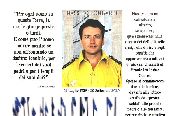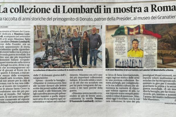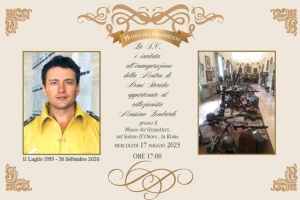 Esposta al pubblico la prestigiosa collezione di armi regolarmente disattivate (non funzionanti) ed equipaggiamenti della prima e seconda guerra mondiale appartenute a Massimo Lombardi, già Tenente dell’8° Reggimento Lancieri di Montebello di Roma e imprenditore siderurgico di Avezzano, deceduto per aneurisma il 30 settembre 2020 all’età di 61 anni.